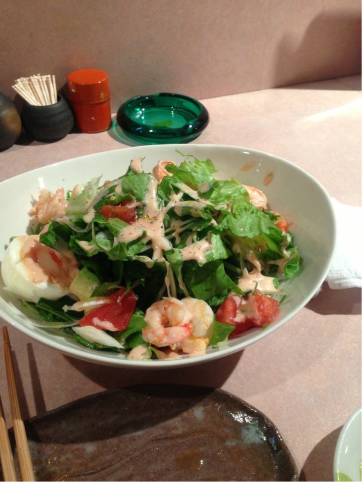 エビとアボカドのサラダ頼んだけど、量がどうも、一人で食べる量じゃないわ
